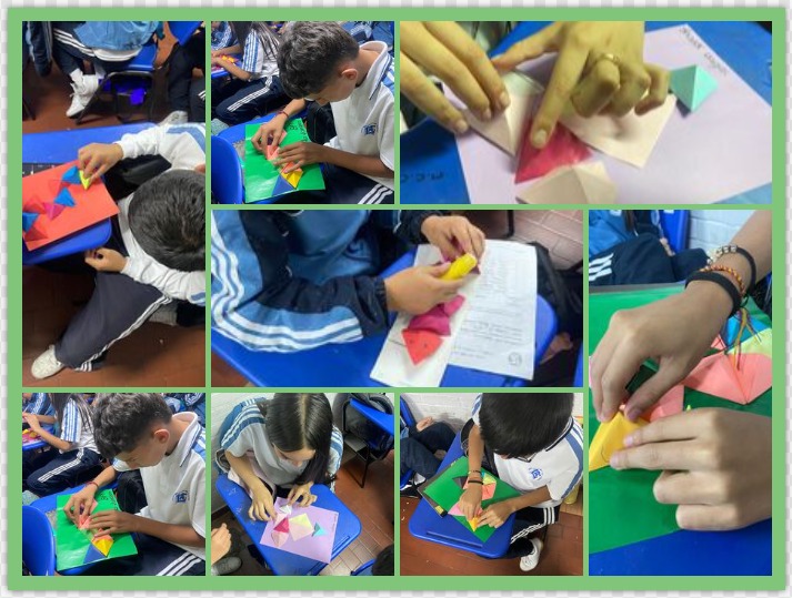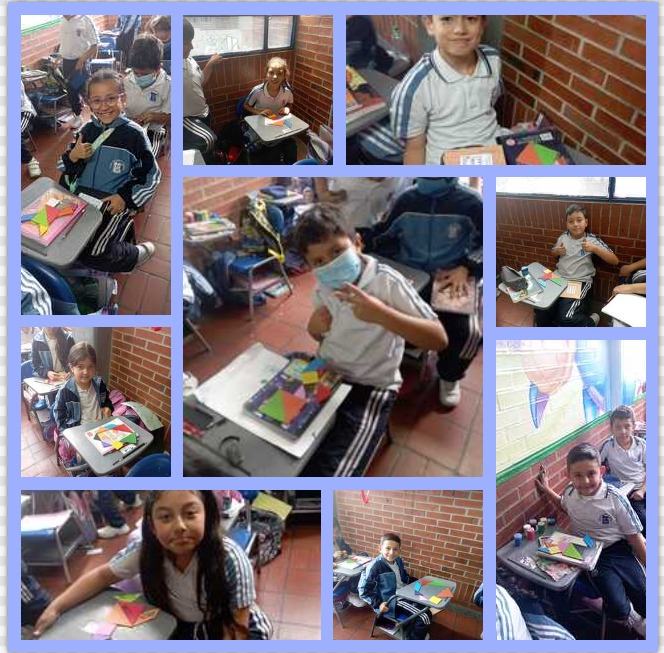 En algunos grados, también realizamos una actividad creativa que consistió en la construcción de figuras utilizando la técnica del teselado, que implica la creación de patrones a partir de la repetición de triángulos en un plano tridimensional. Asimismo, en otros grados, implementamos el juego del Tangram, donde los estudiantes reprodujeron diversas figuras, como animales, objetos, medios de transporte y personas, usando las siete piezas características del juego. Estas actividades no solo resultaron divertidas, sino que también ofrecieron a los estudiantes una oportunidad única para desarrollar su pensamiento geométrico en un entorno diferente.